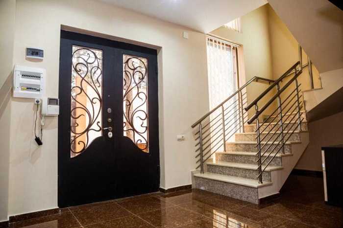 A two-story private house is for rent. The house is built according to the standards of the U.S. Embassy and equipped with a high level of security. The house has a fireplace, 5 bedrooms, and 3 bathrooms. The so-called 0 floor of the house is well-furnished, where there is a gym, a storage room, and a large living room. The yard is green, and the entrance door is operated remotely. There is also an isolated garage in the yard.