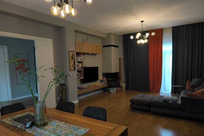 For rent: a private house in Digomi 7, in a secured private settlement (Sololokashvili Street). The house is located in a cozy and peaceful environment. It is close to a school and a bus stop. The yard is landscaped with evergreen plants and fruit trees. Total area: 340 m² Floors: 2 floors Bedrooms: 4 master bedrooms (all with private bathrooms and wardrobe space) The first floor includes: A large living room with a fireplace Fully equipped kitchen (with appliances and furniture) Additional bathroom A gym room The second floor: 4 master bedrooms, each with its own bathroom and wardrobe room Yard: A landscaped, well-maintained yard with evergreen plants and fruit trees Parking space All furniture and inventory remain in the house - ready for living, rented for a minimum of 1 year.