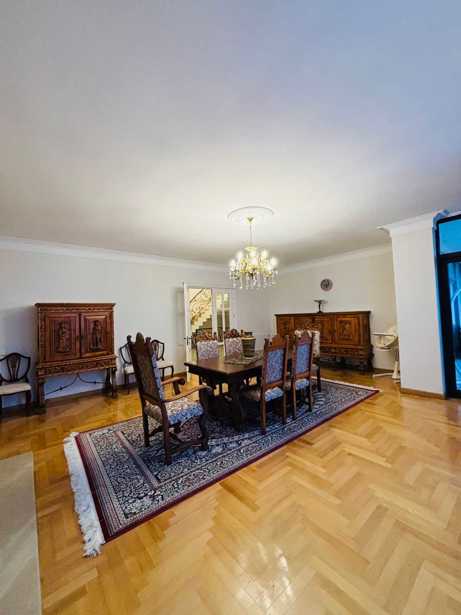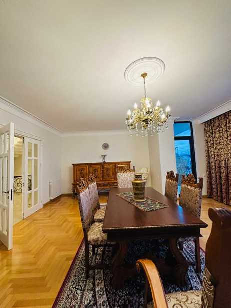 House for rent with 8 bedrooms, located at Tamar Mepe Street, 2nd Turn. The house has 4 floors, the first floor is a 140 m2 basement that can be used as a storage room. On the first floor, there is a large living room + kitchen. On the second floor, there are 4 rooms: 3 double rooms and 1 triple room, each room has its own bathroom. Also on the same floor (second floor), there is a laundry room with a private dryer. On the third floor, there are 3 rooms: 1 large bedroom (family), and 2 double rooms, each with its own bathroom. The fourth floor has a large terrace, a mini kitchen, and a bathroom. The first floor has floor heating, and the others have central heating with radiators. A large yard of 153 m2, with private landscaping and a magnificent view. Beautiful view of the sea and the city (nothing will block the view ahead, the view is guaranteed!). The house is located next to the sun garden, Tamar Mepe Turn, number 2. The rent price depends on the occupancy of the house. For a maximum of 6-7 people family, the rent price will be $6000. The house becomes available from September 15, and during this period it is possible to enter the house. The house is rented for a long term, for at least 6 months. ID: 4503726 (David)