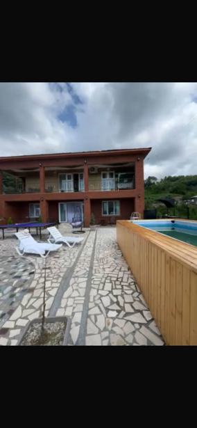 For rent annually, the first floor of a house with a pool, a secured yard with cameras, 15 minutes drive from the city, separate kitchen with central heating. Address: Ortachala.