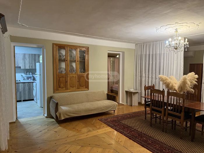 A 2-storey private house is for rent at 26 Street in Kutaisi (entirely or partially). It includes: a large living room, a large reception room, a kitchen, 4 bedrooms, and 2 bathrooms. It has 2 garages and several storage spaces and a basement. The house is very solidly built; cracks and dampness are not observed, and it has a tiled roof. Most importantly, all rooms have primary lighting. The floor is covered with parquet and laminate. All communications are functioning properly. All necessary facilities are located nearby.