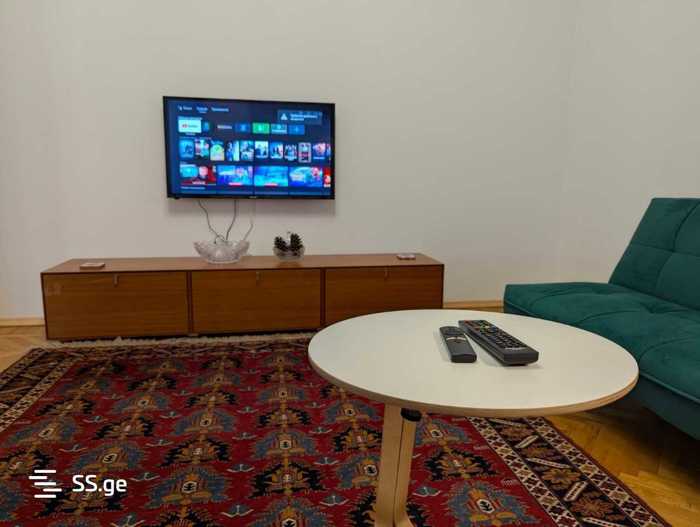 A fully renovated comfortable second floor of a private house is for rent on May 26 Street in Kutaisi, furnished and equipped. ✅️ 2 Bedrooms ✅️ Living Room ✅️ Kitchen ✅️ Common Yard ✅️ Central Heating ✅️ Air Conditioner