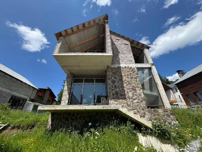 A two-story 127 sq.m. cottage is for sale, with a black frame, in Bakuriani, on Agmashenebeli Street, near Didveli. s/k 64.30.04.300.04.500