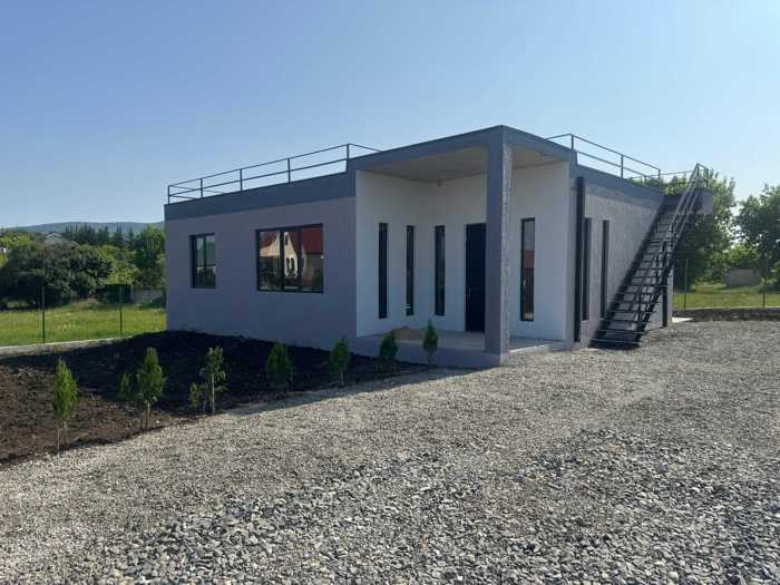 In Saguramo, in the village of Arashenda, a 158 sq.m. house is for sale on a 526 sq.m. plot of land, with all communications. Black frame with doors and windows, metal door, thermal insulation, finished with plaster and a stretched roof.