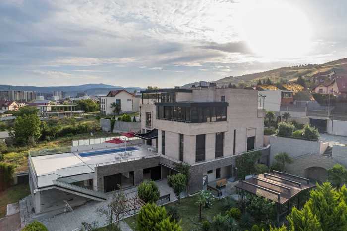 I am the owner!!! I am selling a 570 square meter house built on 1074 square meters in Saburtalo... The house has a separate garage and also a wine cellar... The yard is landscaped and has fruit trees... The house is 2 stories, with a fireplace on both floors, air conditioners, central heating, a large veranda, an indoor closed pool, a dressing room, 5 bedrooms, 2 bathrooms, and many more details that I cannot list here... The furniture stays in the house. There are beautiful views of Tbilisi...