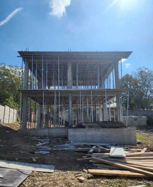 For sale, in a black framework condition, 230 sqm of construction area. Land area is 661 sqm in Saguramo. All communications are in place: water, gas, electricity.. This year, the framework work was completed.. The land is located in Saguramo, on the left side before reaching the locomotive base. External block layout work is ongoing. Cadastral code 72.06.12.013.050 72.06.12.013.980