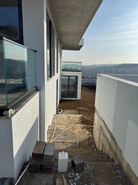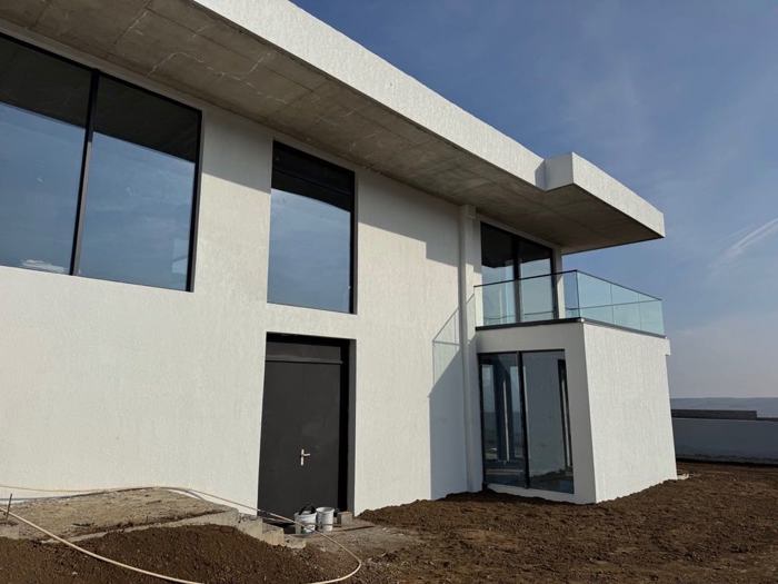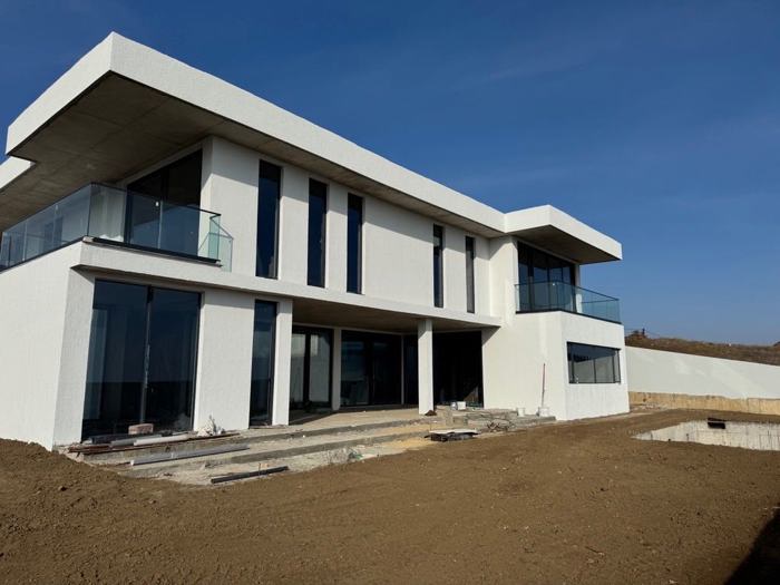 The house is in a green-frame condition (electrical wiring installed, heating pipes laid, walls plastered, gas and water connected, floor screed completed). The best quality materials have been used: Alutech aluminum glazing with high-quality insulated glass, thermal insulation carried out, and top-quality materials and planning methods used for the electrical system. In the yard, high-quality polished concrete has been poured, and landscaping works are underway. There is also the possibility to build a swimming pool in the yard. The gate and garage doors are equipped with an automatic opening/closing system with Italian motors. In the garage, a special high-quality power source has been provided for charging an electric vehicle. From the terrace, there is a beautiful view of Tbilisi. In addition to the terrace, the house has a flat roof with practically more than 100 m² of free space, requiring only tiling. The house is located in a developed area of New Tsavkisi, just 10 minutes from Freedom Square, which is essentially a newly developing settlement.