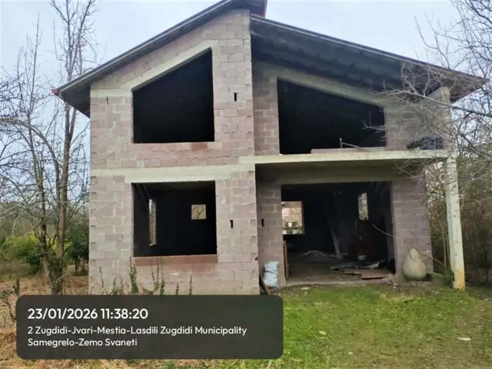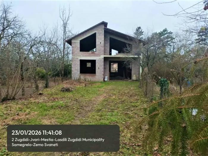 A two-story 227 sq.m private house with a black frame on a 2,501 sq.m plot of land is for sale, Zugdidi, Ingiri village, Victory Street N76. The house on the second floor consists of four bedrooms, a living room with a kitchen and a bathroom and a hall. There is also an auxiliary building in the yard. s/k 43.18.45.131