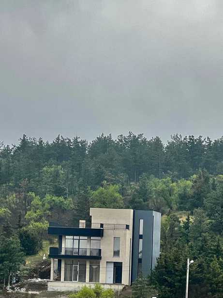 A private house is for sale in Lisi, 3 floors + veranda, total area of the house 415.9 m2, 5 bedrooms, large living room, isolated kitchen, 3 bathrooms, veranda 117 m2 + 2 balconies 3m wide, garage for 2 cars, automatic gates, storage room, wash room, and hall. Water is artesian with a 5-ton tank, central heating system, independent boiler, the yard is fenced with a net.