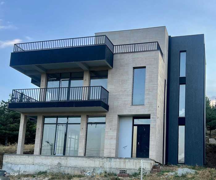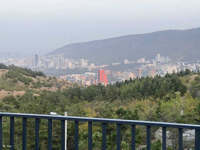 For sale a three-story private house in the most prestigious location of Lisi (in a cottage area) 🌳 It has a coniferous forest and a recreational area on the back 🌆 There are panoramic views of Tbilisi from the house