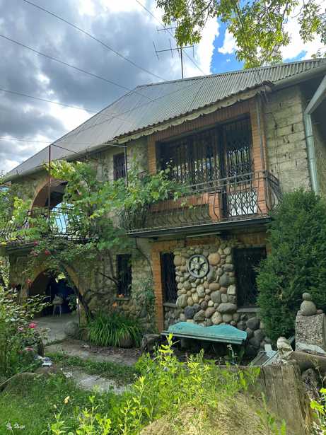The house is located at 70 Pharnavaz Street in the city of Dusheti. The house has two entrances in the yard, and the yard has fruit trees.