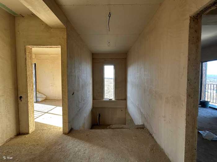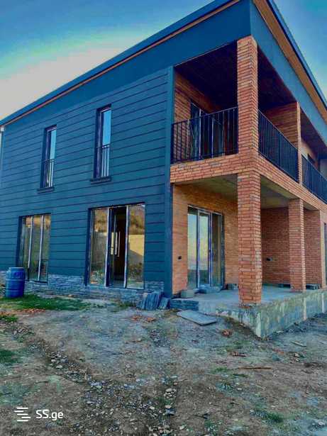 In Navdaraantkari, a newly built two-story house is for sale in a developing area, with a white frame condition. The exterior facade of the house is finished with EPS thermal insulation material, which maintains the temperature according to the season. It is equipped with high-quality black metal-plastic windows, and the balconies are finished with wood and brick. The house has electricity, central heating pipes, and gas, with water supply installed. The internal space of the house is 200 sq. m.: on the first floor, there is a living room, a bathroom, and a fireplace room; on the second floor, there are 3 bedrooms and a bathroom. Each room has a balcony and a window. The yard is fenced, and its area is 500 sq. m. The price is negotiable.