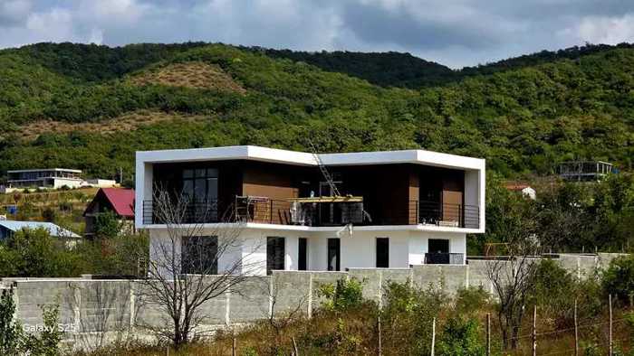 For sale, a house under construction in Misaktsieli, a 15-minute drive from Tbilisi.