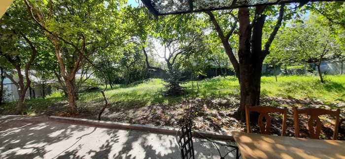 The house is 30 years old, 2 stories + attic and basement. With flat terrain in the yard. All utilities, the yard has fruit-bearing trees, vines, a spring, and a parking space.