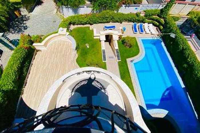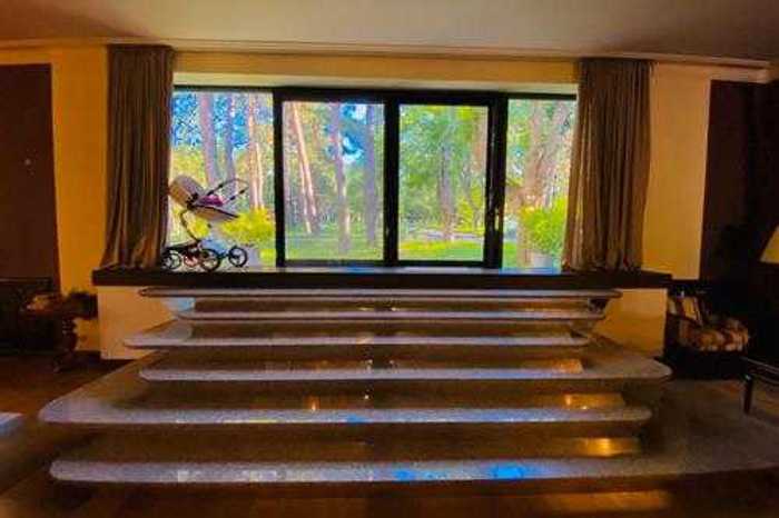 In Tskneti, on Pirosmani Street #39, a private three-story residential house is for sale or rent, with a total area of 951 square meters, with its own yard and swimming pool, which has access from the changing room and shower area located in the inner area of the house. The house is located at the edge of the government dachas zone, and it has direct access to the multi-hectare park space of this area. The house has its own garage with a capacity for 8 cars. There are 5 bedrooms in the house, with private bathrooms. Three of them are duplex-type, with their own living room, bedroom, balcony, and wet areas. There is also one main and one guest bedroom. The house has 2 kitchens, a library, an office, a wardrobe, living spaces, 9 wet areas, 2 fireplaces, 1 terrace (90 sq. m), and 5 balconies. The interior and exterior of the house feature bronze fittings. The rental price is $12,000.