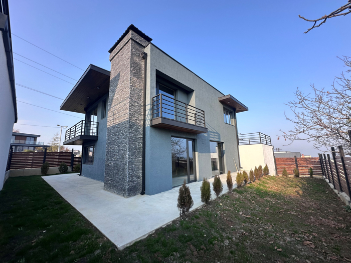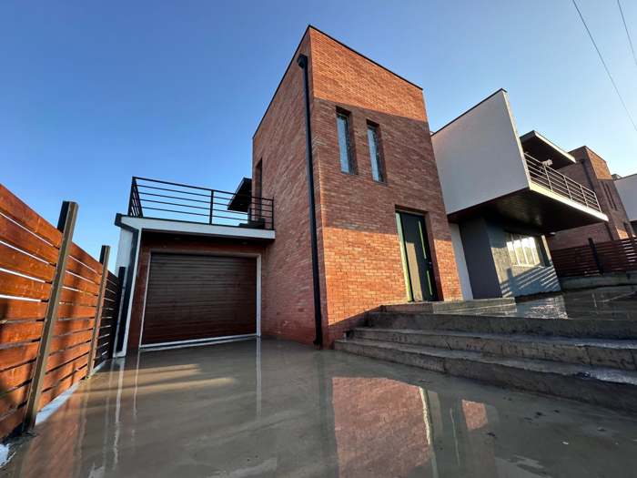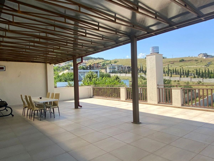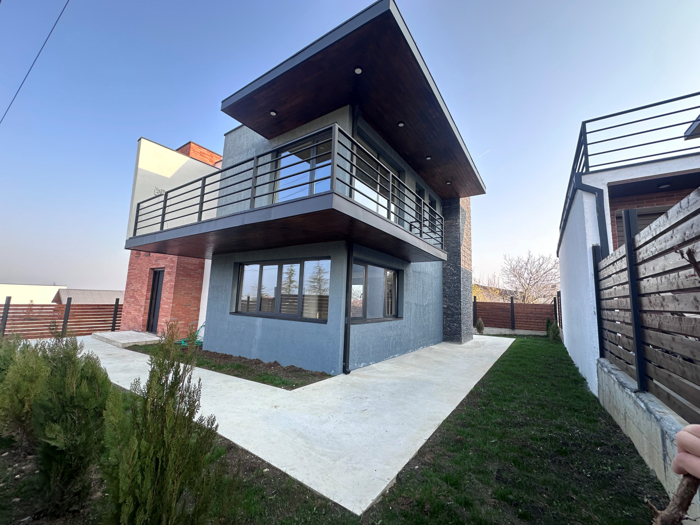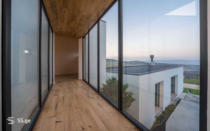 The house is in a green-frame condition (electrical wiring installed, heating pipes laid, walls plastered, gas and water connected, floor screed completed). The best quality materials have been used: Alutech aluminum glazing with high-quality insulated glass, thermal insulation carried out, and top-quality materials and planning methods used for the electrical system. In the yard, high-quality polished concrete has been poured, and landscaping works are underway. There is also the possibility to build a swimming pool in the yard. The gate and garage doors are equipped with an automatic opening/closing system with Italian motors. In the garage, a special high-quality power source has been provided for charging an electric vehicle. From the terrace, there is a beautiful view of Tbilisi. In addition to the terrace, the house has a flat roof with practically more than 100 m² of free space, requiring only tiling. The house is located in a developed area of New Tsavkisi, just 10 minutes from Freedom Square, which is essentially a newly developing settlement.