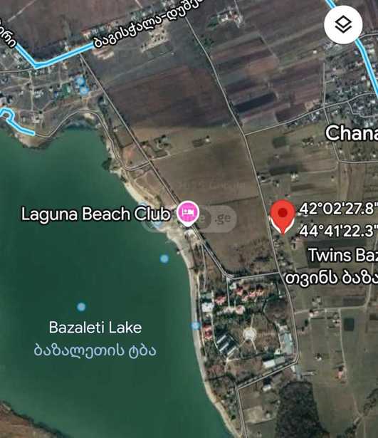 Finished private house 400 meters from Bazaleti Lake, with views of the lake, greenery, and environmentally clean surroundings. The total building area is 241 sq.m (145 sq.m on the first floor, second floor terrace 110 sq.m). All utilities are connected; the building has a well-equipped yard of 609 sq.m; the house is handed over for operation; land code: 71.56.23.799. The house is valued at $100,000.