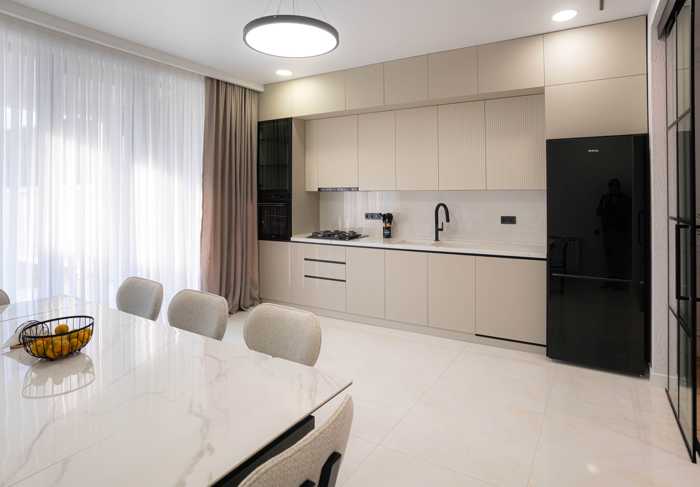 For sale on Didgori Street (village Dighomi) a premium class house. The building is a capital concrete structure, the facade is wrapped in expensive wood ('listvinitsit'). The pool is finished but needs decoration. There is a garage, a technical room, and a shower in the yard. The perimeter is equipped with cameras and a security system. The house has three bedrooms, but if necessary, a fourth bedroom can be arranged. The kitchen is isolated. I am the owner.