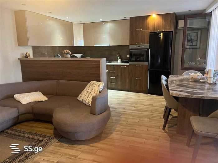 For sale, an apartment in Beritashvili Street. Two storeys. With a large veranda (40 sq.m). On the second floor, there are 3 bedrooms (20 sq.m, 15 sq.m, 15 sq.m), a living room (20 sq.m), a studio kitchen (30 sq.m), a bathroom (9 sq.m), and an entrance on the other side (8 sq.m). On the first floor, there is a bedroom, a living room, and a kitchen. Wet area. Potential for a third-floor expansion. With the best views and a quiet location.