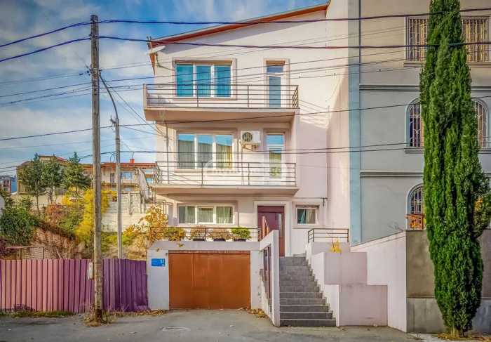 For sale is a private 3-story house in Saburtalo, on Tsitskihidze Street, close to Delisi metro station. It is located on a non-agricultural plot of land. The street is quiet. Suitable for both residential and commercial purposes. ✅ Main features: • Living area 317 sq.m • Yard area 75 sq.m • Bedrooms - 5 • Bathrooms - 3 • 3 balconies and 1 veranda. • Ceiling height - 3.10 m • Central heating • Garage.