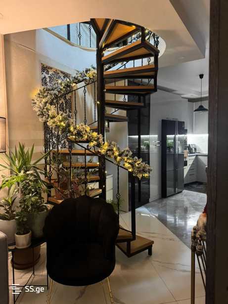 Two-story private house near Beri Gabriel Salosi in a private quiet neighborhood. The house is fully newly built with a capital foundation, allowing for the possibility of adding two more floors. The renovation was completed three years ago. The house has three isolated bedrooms (on the second floor), all with initial lighting, two of which have balconies. On the first floor, there is a kitchen, a living room, and a bathroom. The house also has a well-arranged yard where a car can easily enter, and there are also storage rooms in the yard. There are two driveways next to the house, as well as a third pedestrian way. The house has all the necessary documents and project, and it features central heating. Partially furniture and all built-in appliances remain. The house does not have a common wall with the neighbors and stands fully independently.