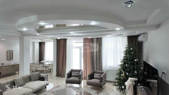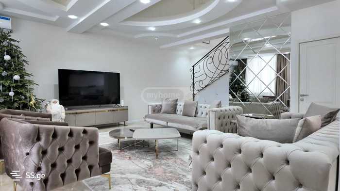 For sale: a 9-room house with an area of 245 sq.m. near Tbilisi Sea with beautiful views, newly renovated, furnished and equipped, with a garden of 450 sq.m. The house is energy-efficient. The house has a large living room (60 sq.m) and an isolated dining room.