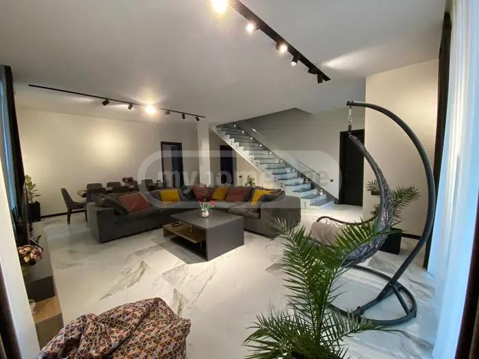 House for sale in Digomi, behind the Toyota center, the house is built of the highest quality materials with the best design. The house has 5 bedrooms, 1 master bedroom, all necessary appliances and furniture, has yard parking, electronic gate, fireplace in the yard, and a wonderful area for a porch, veranda.