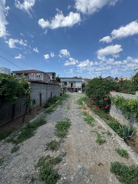 For sale: a land plot in Mukhians' Akareqvebi, land area 600 sq.m., house area 100 sq.m. The house is in a black frame condition. The first floor is concreted. Electricity, water, and natural gas are connected. Address: Autumn St. 48. Price $85,000.