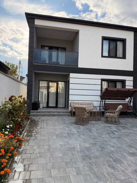 House for sale in Tbilisi in one of the best locations for living, newly built, uninhabited, fully renovated and furnished two-story house with furniture and appliances. The house is renovated with premium quality materials. The furniture and appliances available in the house are from leading brands on the market. TEKA built-in appliances, TEKA washing machine with dryer, high-quality built-in furniture, Lenovo smart lock, Italian heating system, water filtration system, intercom at the gate, video surveillance cameras around the house, outdoor furniture, a well-maintained and landscaped yard with various flowers, a separate utility/technical room. On the first floor, there is a living room, kitchen, bathroom, and 1 bedroom. On the second floor, there are three bedrooms and two bathrooms. The largest bedroom has its own balcony, walk-in closet, and a large isolated bathroom. The house has two well-equipped yards. The entrance gate to the main yard is electronically controlled - operated with a remote control. It accommodates two cars.