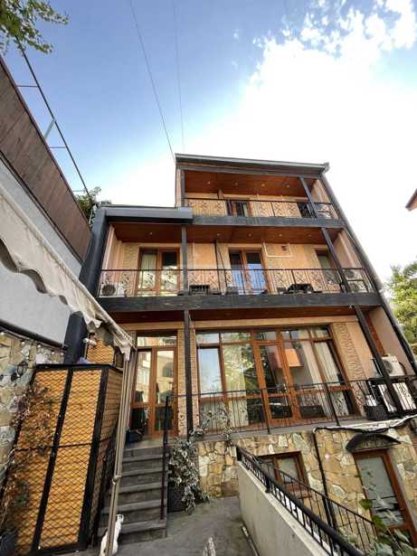 For sale a 4-storey private house in Tbilisi, in Saburtalo, near Pekini Street, by Bukia's Park. The area of the building is 415 sq.m, the terrace area is 80 sq.m. More than 10 rooms, 8 bedrooms (each has its own bathroom, including two with a separate kitchen). Unique investment property, can be converted into a hotel, office, clinic, or family business. Fully furnished and equipped with appliances. Fireplace, central heating, air conditioning, balconies, and summer space with fruit in the yard.