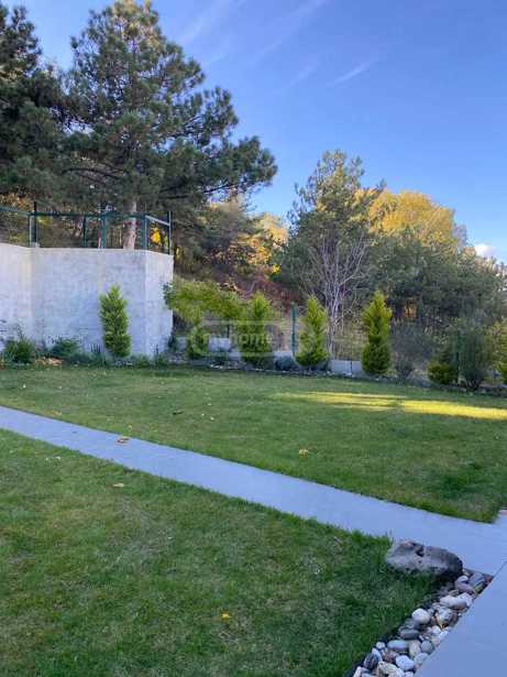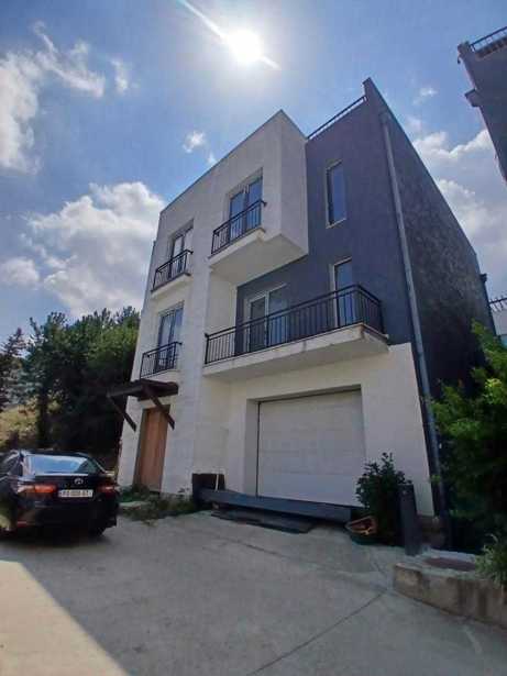 A private house for sale in Tsqneti in a quiet location, close to nature, with an extraordinary view. It has three parking spaces, a closed pool, and a large terrace.