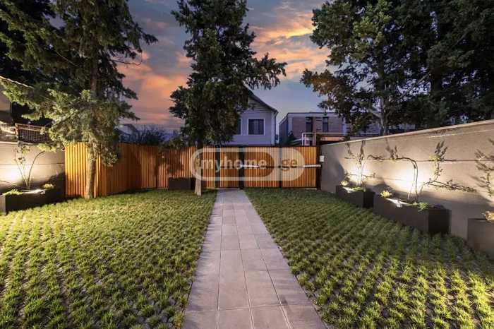 For sale in Digomi 7, in the most elite location on Goderdzi Choqhelis Street, a private house. The house is 210 sq.m, the yard is 415 sq.m. On the first floor, there is a large living room-kitchen + veranda + bathroom + storage room. On the second floor, there are 3 bedrooms (2 of them are master bedrooms with their own bathrooms). The three bedrooms have access to a large veranda. All rooms are equipped with air conditioning and heating.