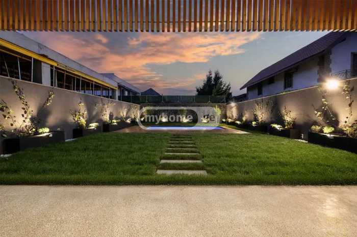 Urgent! Private house for sale in Digomi, on Chokheli Street. Total area: 320 m2. Yard area: 400 m2. Energy-efficient aluminum doors and windows were used in the renovation work, on the Belgian wooden facade. Plumbing Villeroy & Boch and Grohe. In the kitchen you will find Bosh and Midea built-in appliances (dishwasher, oven, gas stove, built-in refrigerator, microwave oven). Built-in cabinets with MDF oak veneer are installed throughout the house. There is a pool in the back of the yard. Parking space for 3 cars is provided in the front of the yard. A new generation air conditioning system and underfloor heating are installed in all rooms. The house has a security system, namely video monitoring with recording function. An electric gate with remote opening and closing is also installed. A smart lock key is installed on the entrance door of the house. The yard is fully landscaped and equipped with an automatic irrigation system. Price: 650,000 USD.