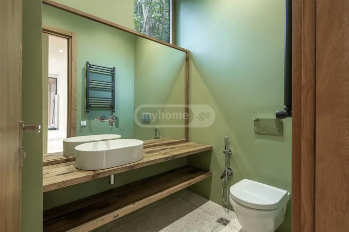 For sale is a newly built private house in Digomi 7. Energy-efficient aluminum doors and windows have been used in the renovation work, with a Belgian wooden facade. Plumbing from Villeroy & Boch and Grohe. In the kitchen, you will find built-in appliances from Bosch and Midea (dishwasher, oven, gas stove, built-in refrigerator, microwave oven). Throughout the house, there are installed built-in cabinets with MDF oak veneer. There is a swimming pool located in the back of the yard. The front side of the yard is designated for parking space for 3 cars. Each room is equipped with a new generation air conditioning system and underfloor heating. The house has a security system, specifically video monitoring with recording functionality. A remotely closing electric gate is also installed. A smart lock key is installed on the front door of the house. The yard is fully landscaped and equipped with an automatic irrigation system.