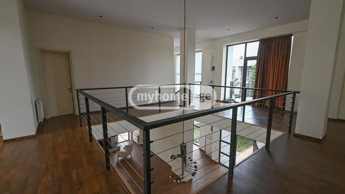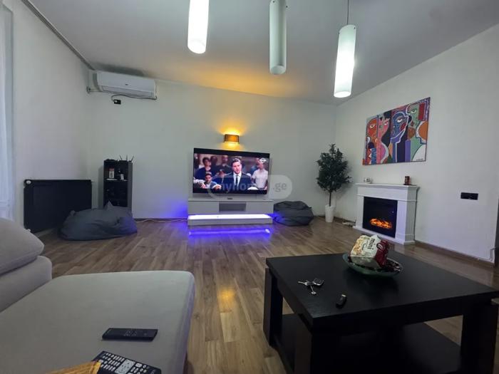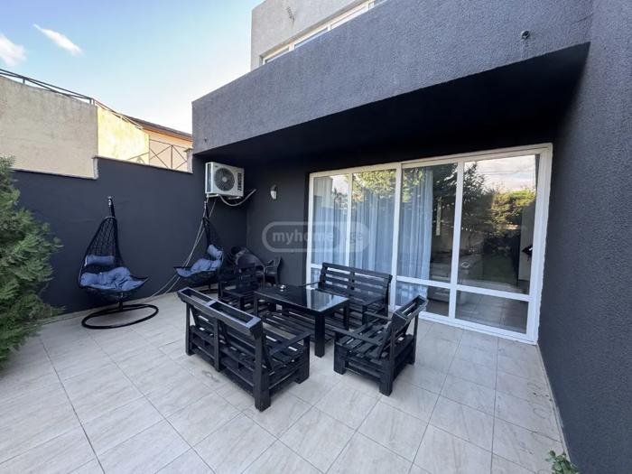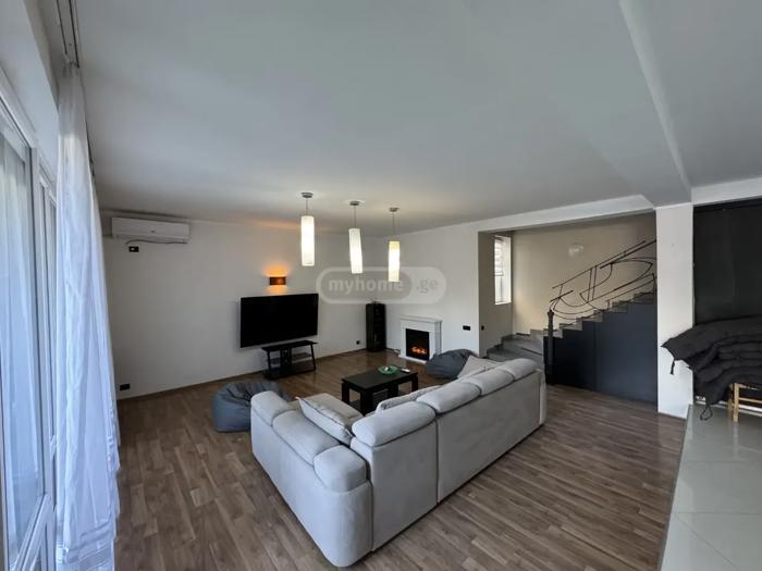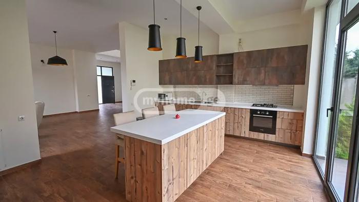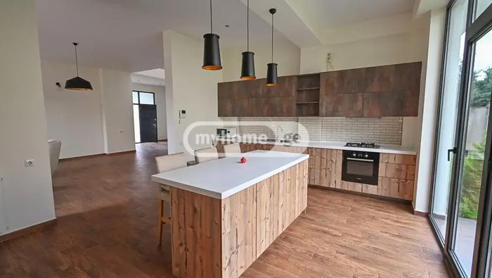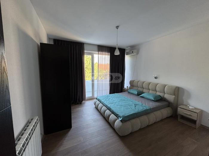 For sale is a newly built private house in Digomi 7. Energy-efficient aluminum windows and doors have been used in the renovation works, along with Belgian wood for the facade. Plumbing from Villeroy & Boch and Grohe. In the kitchen, you will find built-in appliances from Bosch and Midea (dishwasher, oven, gas stove, built-in refrigerator, microwave). The entire house is fitted with built-in cabinets made of MDF oak veneer. There is a swimming pool located at the back of the yard. The front side of the yard has parking space for 3 cars. Each room is equipped with a new generation air conditioning system and underfloor heating. The house has a security system, specifically video monitoring with recording functionality. An electric gate that can be closed remotely is also installed. A smart lock key is set at the entrance door of the house. The yard is fully landscaped and provided with an automatic irrigation system.