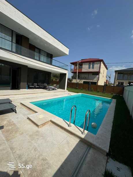 "Premium class house behind the city court - your ideal space in Dighomi!\nPresenting an exceptional two-story house where modern design meets maximum comfort. Panoramic windows and glass balconies fill the house with natural light and create a unique atmosphere.\n✨ Exceptional features:\n\n260 sq.m of living space\n520 sq.m of land plot\n4 bedrooms (3 master bedrooms with their own bathrooms and wardrobes)\nModern pool (4.5×8m) with natural travertine finish\nAutomatic irrigation system\nSecurity cameras\nElectric gate\n\nHigh-quality renovation and furniture ensure immediate occupancy. An ideal offer for those who value quality, comfort, and privacy.\nPrice: $620,000\nContact us"