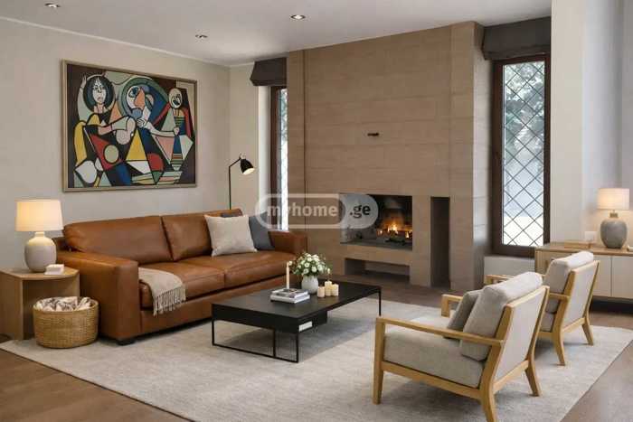 For sale: 2-story villa in Digomi 7 - in a quiet, elite neighborhood surrounded by pines, with a pool, entertainment space, and parking for 5 cars. House area - 500 sq.m land area - 1100 sq.m - 5 bedrooms (3 master bedrooms with walk-in closets and bathrooms) - 5 bathrooms - very large kitchen/dining room that turns into a summer space through sliding doors - large living room - 50 sq.m veranda - 30 sq.m patio (outdoor summer space) - pool (9X4) - 50 sq.m cellar with entertainment area and also a bathroom - parking for 5 cars