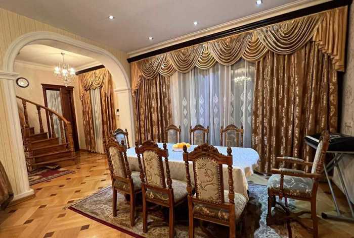 Urgently a good place 3-story block newly built house has a sanitary unit on each floor, on the 1st floor there is a bathroom and a reception room, on the 2nd floor there are 2 bedrooms, a kitchen, and a bathroom, on the 3rd floor there are 3 bedrooms and a bathroom. It can be suitable for a family hotel with a garage in the yard.