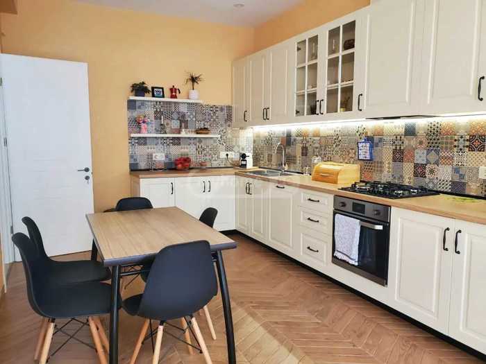 With a large parking lot for 3 cars, an entrance with a height of 3m and a width of 6m with a high-quality door, the ceiling height of the parking is 5m. A landscaped yard, heating and hot water (with a boiler) is separate, a terrace of 120 sq.m. with a covered space on the roof, a 60 sq.m. veranda, most of which is also shaded by a console, independent entrances to the first and second residential floors, the first is currently rented out, the rest you will see on site.