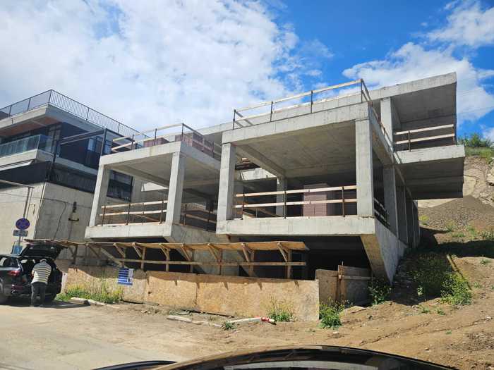 A large parking lot for 3 cars, an entrance with a height of 3m and a width of 6m featuring a high-quality door, with a parking ceiling height of 5m. A landscaped yard, separate heating and hot water (with a boiler) system, a 120 sq/m terrace with a covered area on the roof, a 60 sq/m veranda, most of which is also covered by a console, first and second floors with independent entrances.