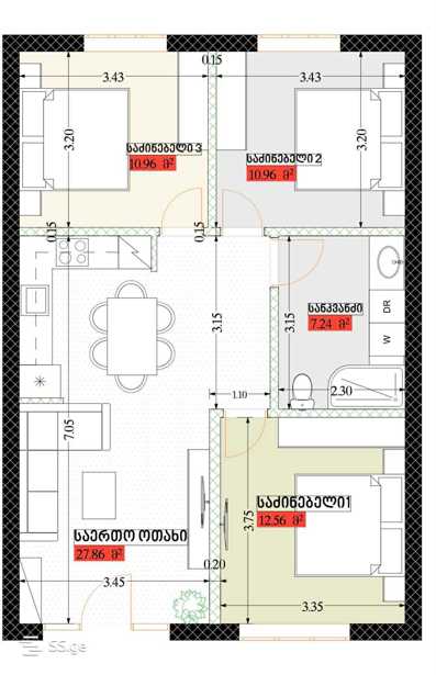 House for sale, in black frame condition. Gldani, Kula Gldaneli St. The house area is 100 sq.m. The yard area is 275 sq.m. According to the project, there are 3 bedrooms, a studio living room, and a bathroom, balcony. Of course, you can also change the internal layout. Concrete has been poured at the boundaries. The house has a front and back yard (3 meters wide from the boundary to the house).