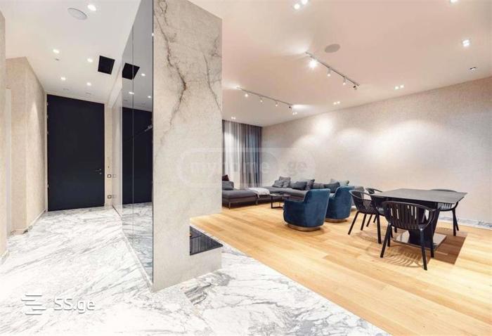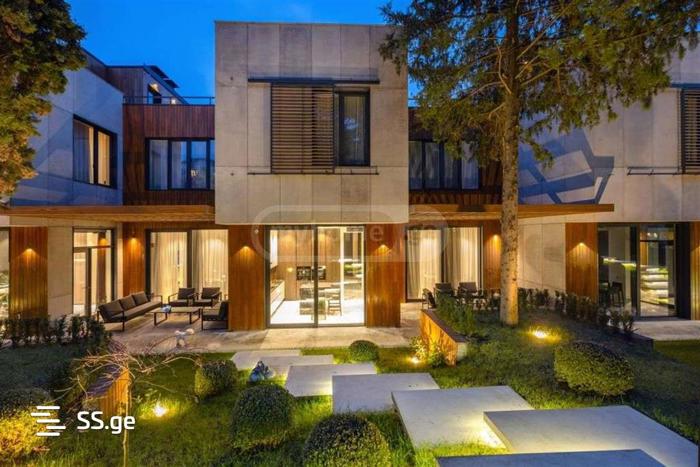 A villa is for sale in a prestigious and secure area on Krtsanisi Street in Krtsanisi Residence with 2 underground parking spaces and 2 outdoor parking spots. The Krtsanisi Residence accommodates 70 families on a 26,000 sq. m territory, with 50% dedicated to recreation, 30% to buildings, and 20% to roads and private yards. There are walking and running paths in the central strip, a tennis court, and a fitness gym, as well as a landscaped park, gardeners, security, cleaners, and non-agricultural purposes.