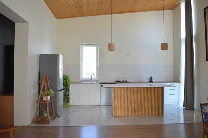 For sale in Ortachala, near the British Embassy, 2-story, 427 sq.m, with 5 bedrooms, 4 bathrooms, isolated kitchen, billiard room, sauna, the house is made of natural wood material (interior doors, parquet), the yard area is 890 sq.m, which has a swimming pool, the yard is landscaped with various types of roses, there are also 2 kinds of grapes, white and black, price 1,700,000$