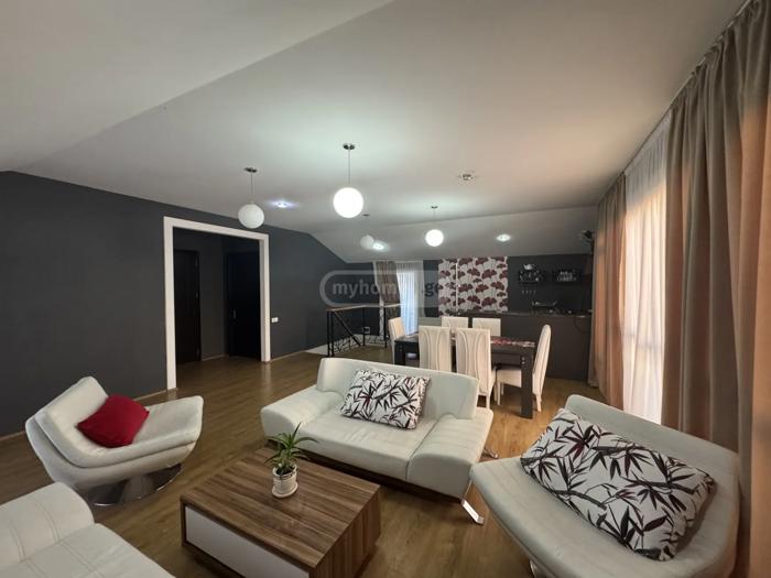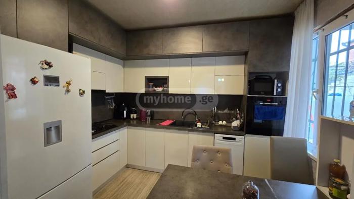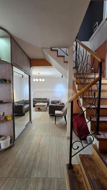 For sale is a 3-story private house located a 10-minute walk from Guramishvili Metro station. The apartment has 4 bedrooms, 2 bathrooms, 1 separate kitchen, 1 spacious studio, bright interior, large windows, high ceiling, and space for parking.