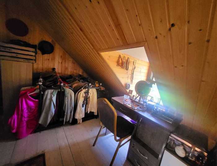 For sale is a renovated, furnished 2-story house in Finnish style in Vashlijvari with a green yard. On the 1st floor of the house, there is a living room with a working fireplace, a kitchen, 1 bedroom, and a bathroom; on the 2nd floor, there is a second bedroom and a large wardrobe space where a third bedroom can be made. The house is equipped with all necessary furniture and appliances.