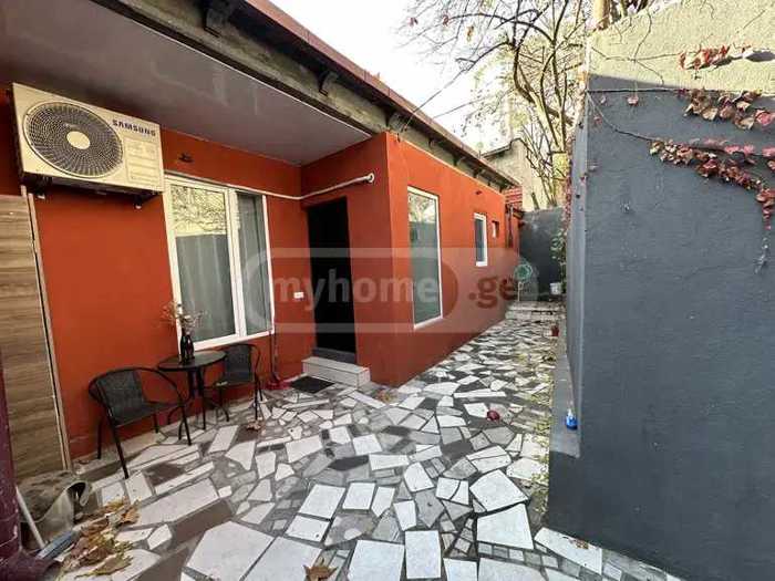 A private house is for sale in the city center on Rustaveli. It is a 2-minute drive from Rustaveli Metro, next to the cable car. The yard is isolated. The total area is 80 square meters, of which 25 square meters is the yard. One room is in the basement and has secondary lighting. The house is permanently rented. It is ideal for both Airbnb and as a commercial space for work.