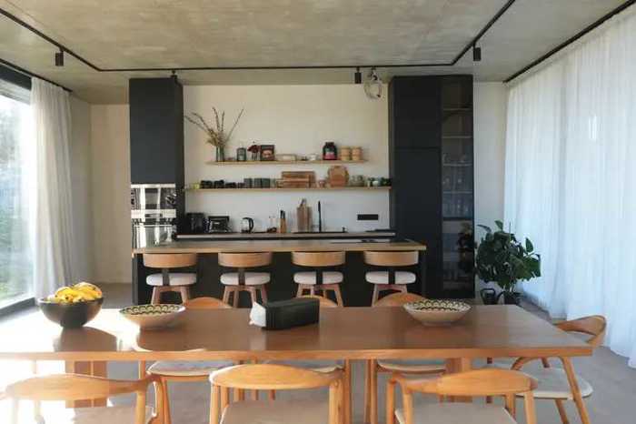 For sale is a modern style, energy-efficient one-story house with large windows and a ceiling height of 3.05 m. The house has underfloor heating and outstanding spatial planning — • spacious 87 m² living room with large panoramic windows • master bedroom with its own bathroom and wardrobe • one additional bedroom • office and exercise room • separate bathroom and comfortable laundry room The house is move-in ready, renovations are almost complete. There are some minor finishing works left in the building. 📏 total land area – 1377 m² 🏠 house area – 200 m² (interior living area) 🌿 large veranda – 100 m² 🍽️ built-in kitchen with high-quality appliances 🔒 equipped with four solar-powered video cameras that function independently and do not require charging part of the photos is a render, the rest is a real photo. A quiet and green environment with beautiful views of Tbilisi. Ideal for comfortable living or for a holiday home. bathrooms 2 year of construction >2000 heating central + underfloor heating parking yard parking hot water gas heater building material combined internet yes television yes natural gas yes reception yes water yes sewage yes electricity yes fenced yes Chonkadze house in Shindisi