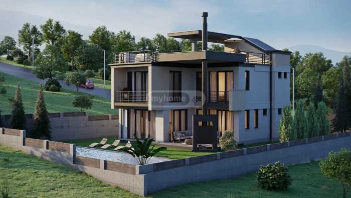 For sale: a house with a pool in Tskhinvali. The usable area with terraces and balconies is 323 m2. The yard is 450 square meters, with a pool. (+pool 55 m2) The house layout allows for: 1) On the first floor: one room, a common "studio" room, WC, tech. room - laundry, open veranda with a fireplace. On the second floor: three bedrooms, (one with a wardrobe and private WC), one common WC, all rooms with balconies. Third floor: open veranda with a sunshade roof. 2) On the first floor: a large isolated kitchen, common room, WC, tech. room - laundry, open veranda with a fireplace. On the second floor: three bedrooms, (one with a wardrobe and private WC), one common WC, all rooms with balconies. Third floor: open veranda with a sunshade roof.