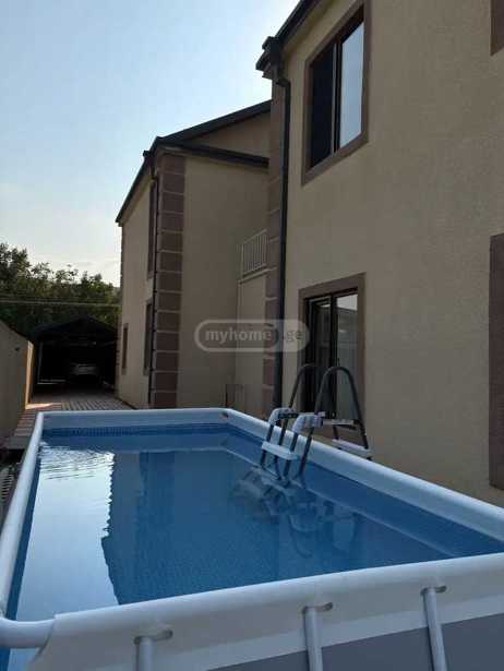 House for sale with a pool in Tskhinvali. The area of the house with balconies and terraces is 330 sq.m. Existing communications: Water - well; sewage - individual; electricity/gas. Total land area 600 sq.m; terrace and balconies 150 sq.m; open parking for 3 cars 48 sq.m; pool 48 sq.m (12x4 sq.m); pool technical service room 6 sq.m Green area of the yard 400 sq.m; fence perimeter 100 linear meters.