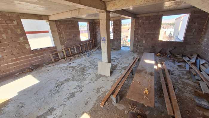 For sale in Ivertubani a newly built house, half basement, first floor, second floor, each floor is 90 square meters, the house is built, doors/windows are installed, the house is roofed, a minibus stops nearby, final price 160,000 $ .